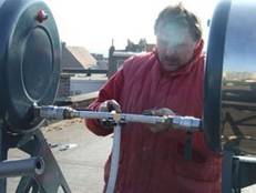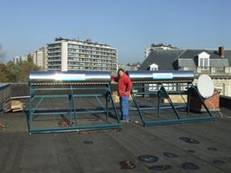 Alimentation en eau chaude de 4 appartements via 2 collecteurs de 390 litres.